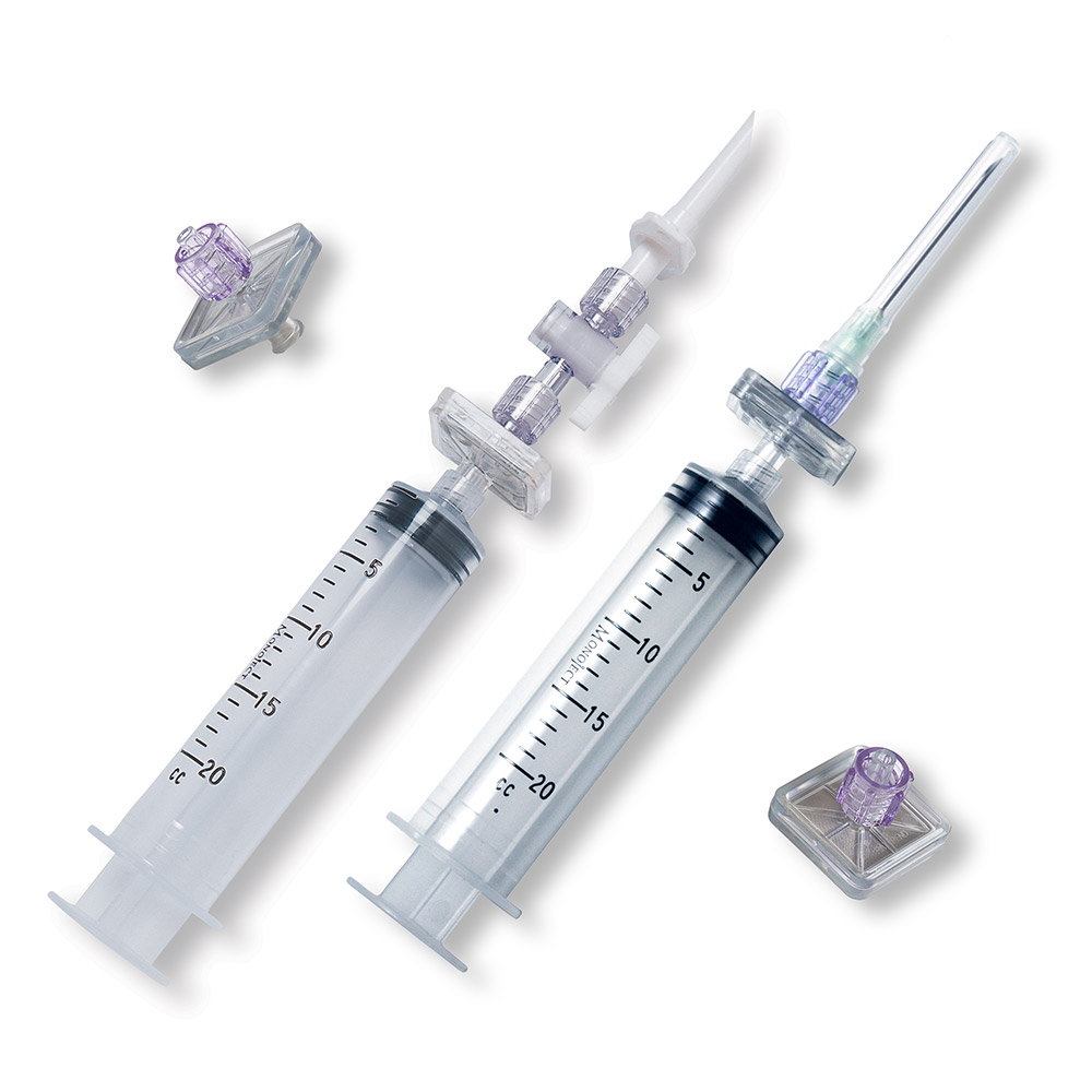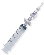 • Luer locking hub allows the use of a standard syringe without a needle.